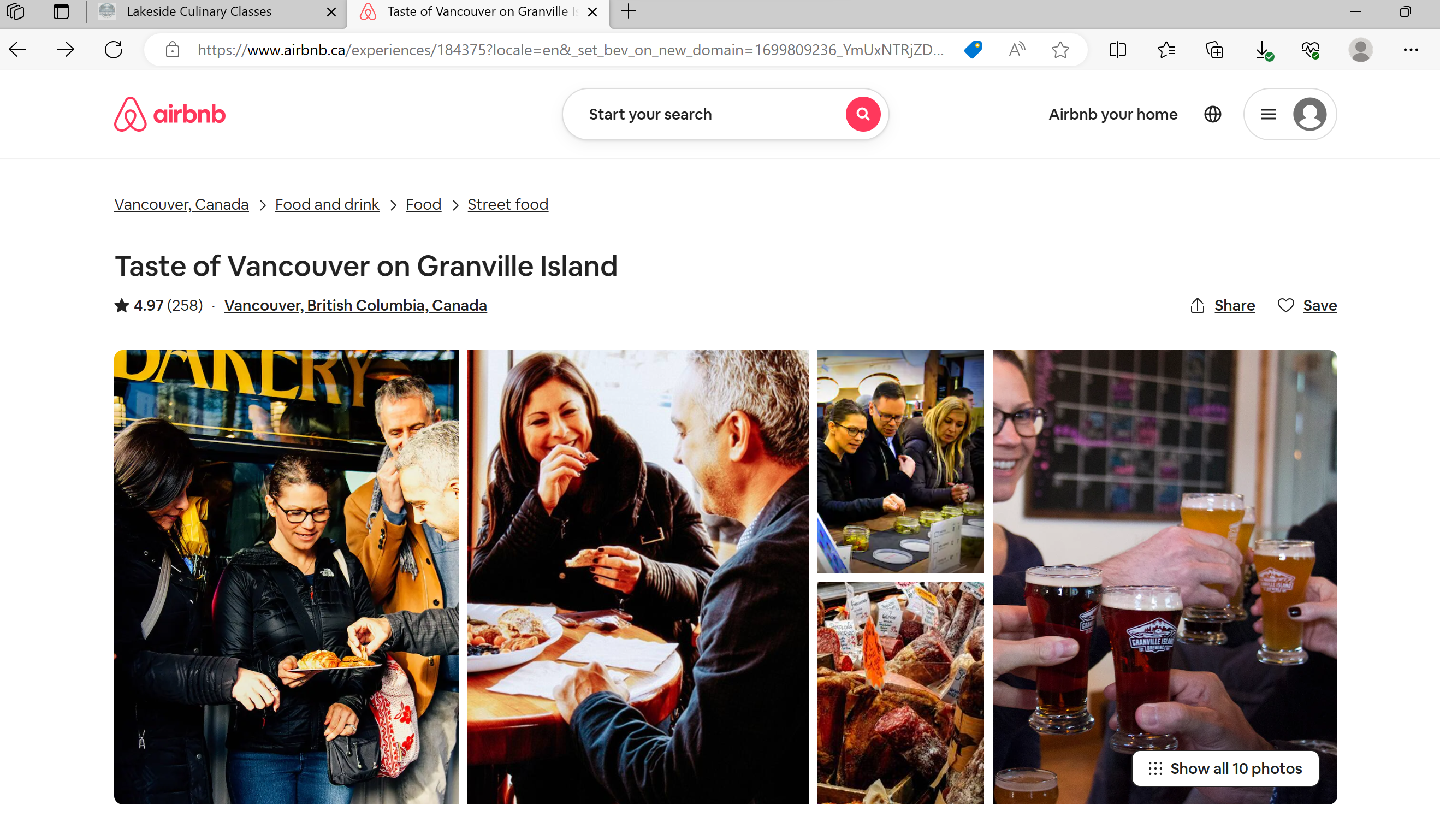 Following extensive travel, I began teaching private, in-person cooking classes in Vancouver. I found it incredibly fulfilling to deal with “real” people vs the virtual world. Getting into the kitchen and witnessing someone transform their cooking skills in just a few hours was extremely rewarding. At the same time, I also led my own food-tasting tours on Granville Island through Airbnb Experiences, and I was grateful that guests rated the experience 4.97 out of 5 across 258 reviews, which reinforced my focus on thoughtful cooking, storytelling, and hospitality. Meeting new people and being able to talk about and share the best food in the market was a thrill for me.